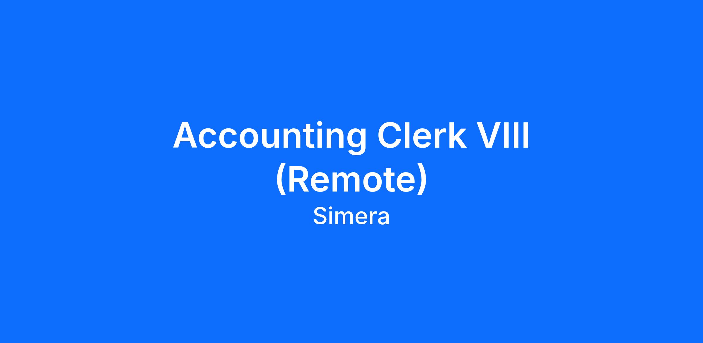 Accounting Clerk VIII (Remote)