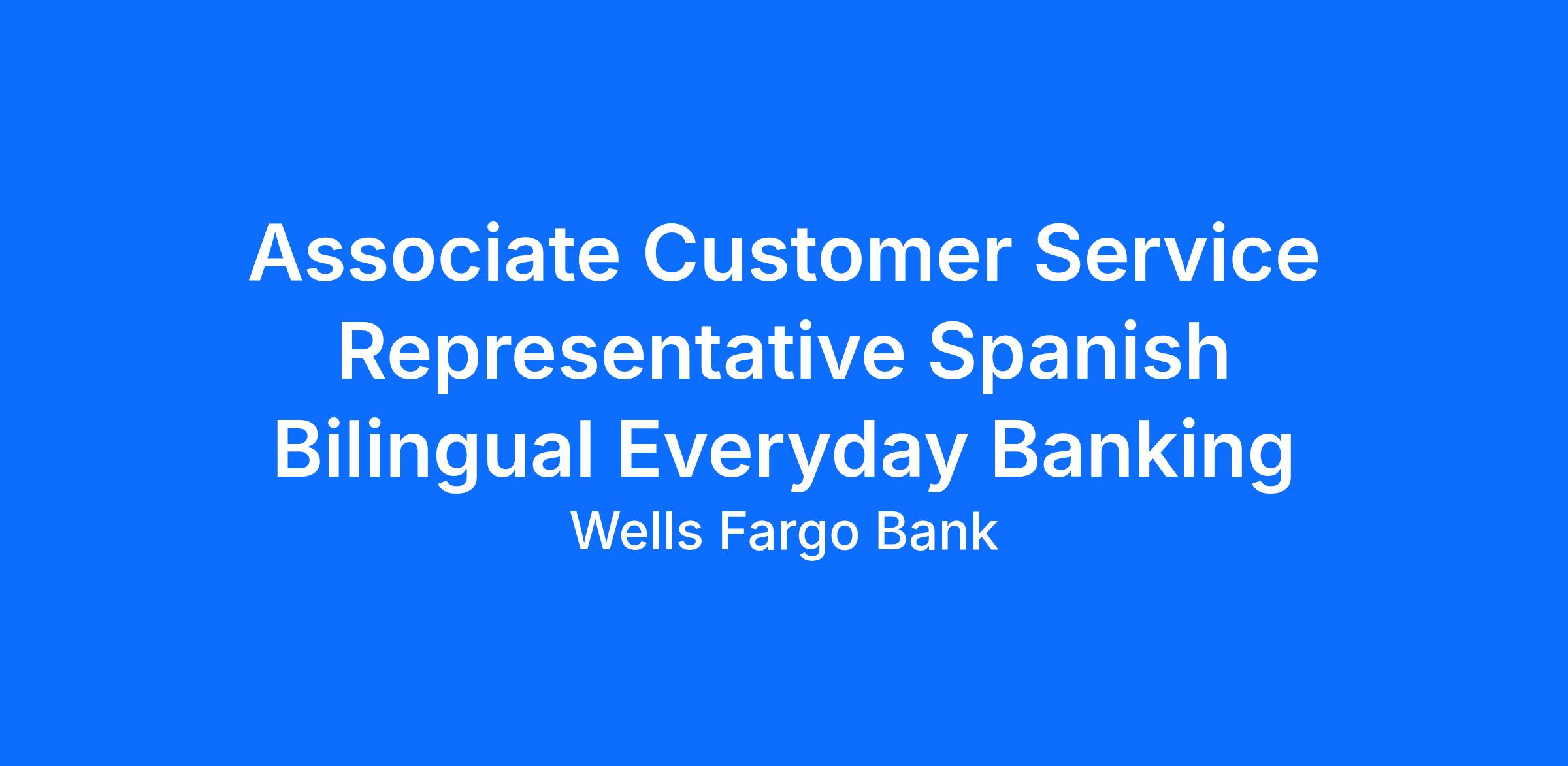 Wells Fargo is seeking an Associate Customer Service Representative in Everyday Banking. Find out why we’re the #1 financial services company to grow YOUR career. Apply today.