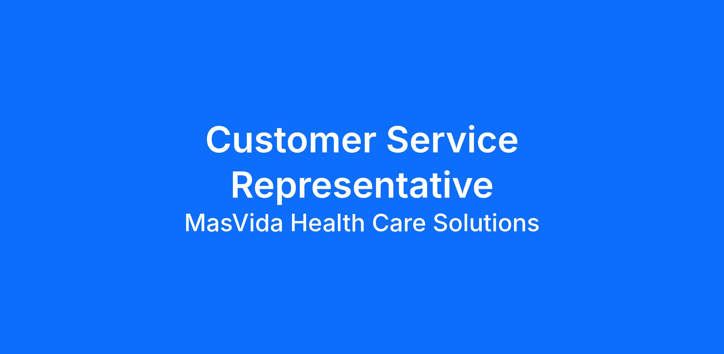 The Customer Service Representative (CSR) serves as the first point of contact for MasVida Healthcare Solutions’ customers, including healthcare facility staff, patients, and internal teams. This role is responsible for managing inbound and outbound communications, resolving service requests, processing orders, and ensuring a timely and accurate response to all inquiries. The CSR plays a critical role in supporting patient care through responsive, courteous, and compliant service.