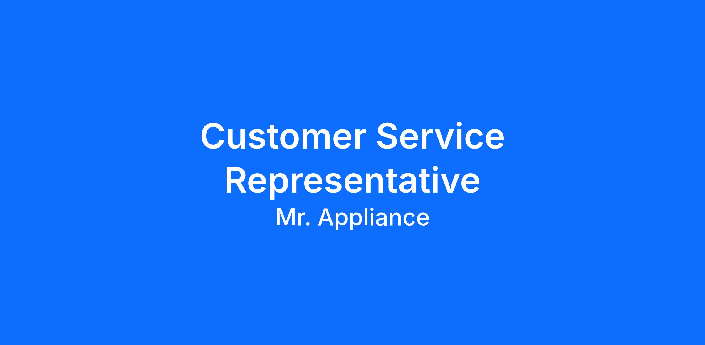 As a Customer Service Representative, you are a key member of the team and represent Mr. Appliance on support calls. You are responsible for handling service requests and customer complaints. Exemplifying our code of values, you show respect and courtesy to all customers and employees.