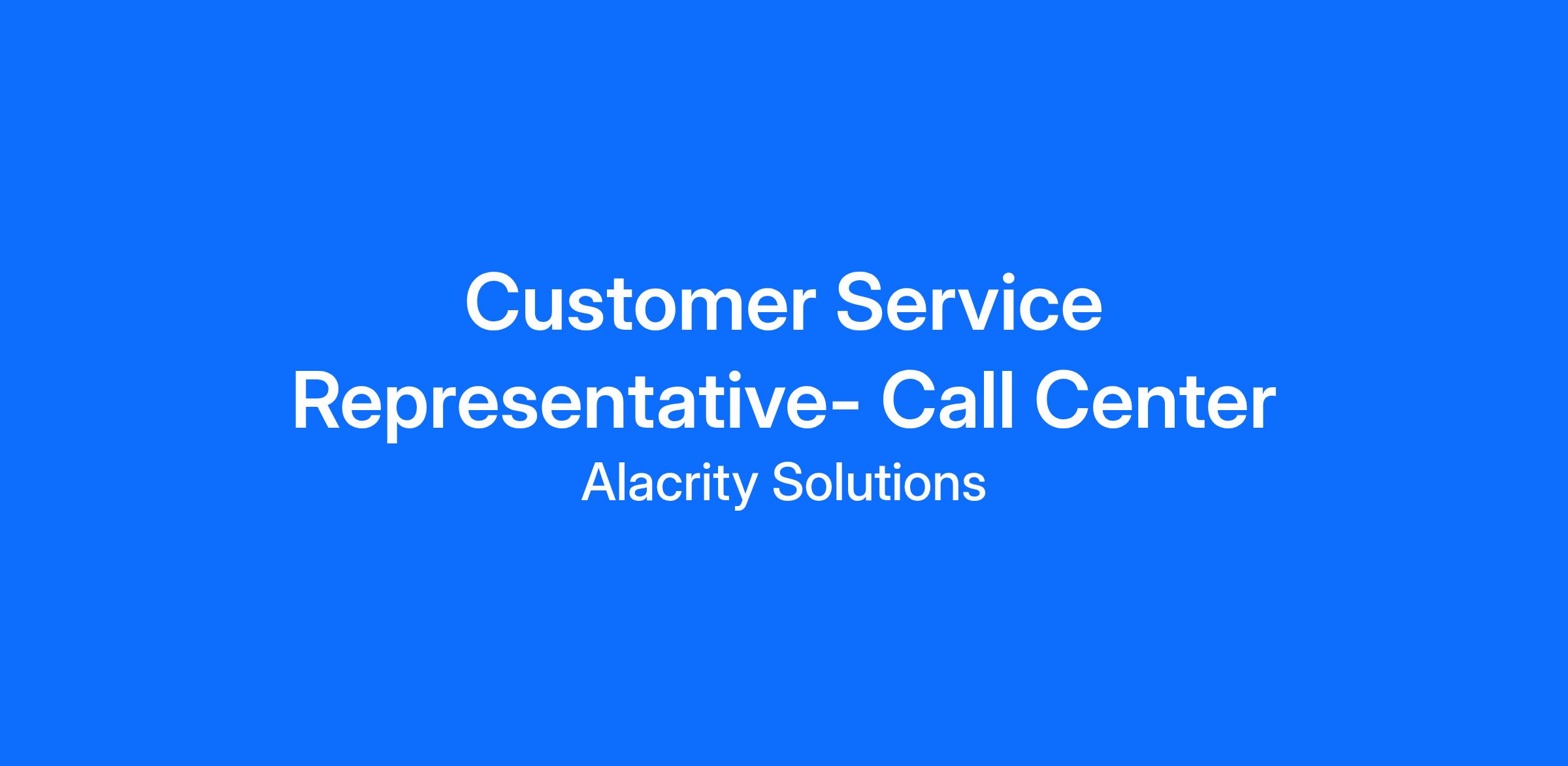 Customer Service Representative- Call Center