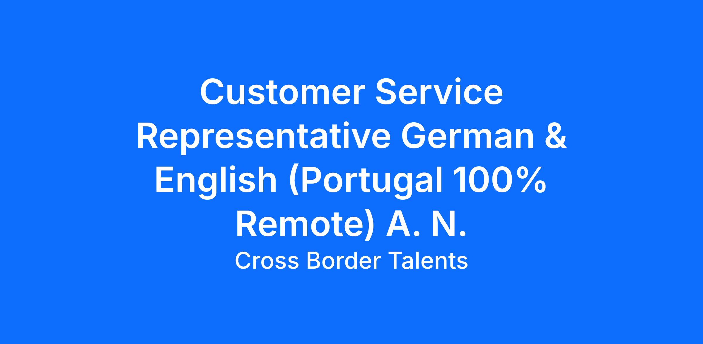 Customer Service Representative German & English (Portugal 100% Remote)
