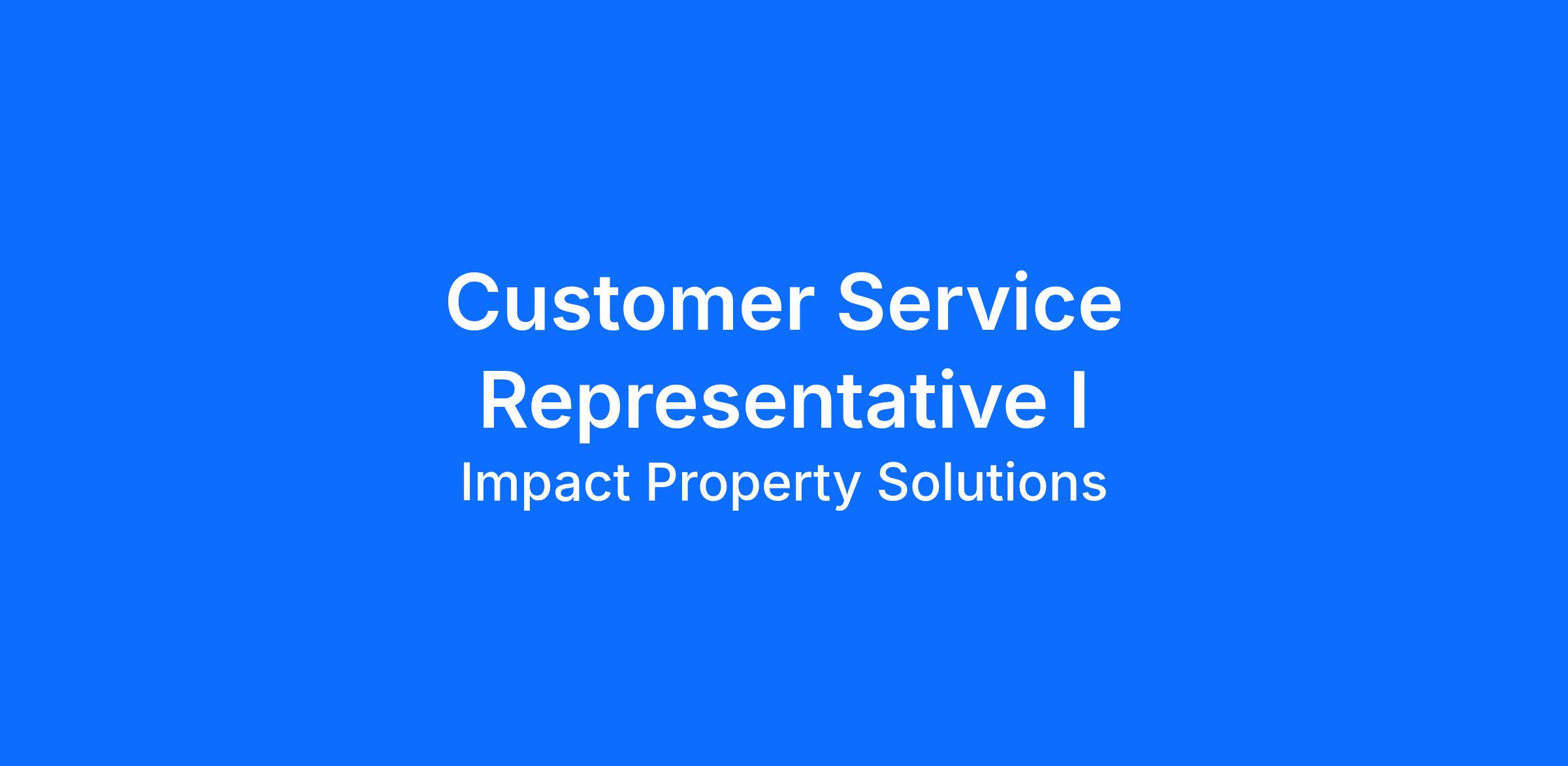 Impact Property Solutions is searching for a Customer Service Representative to act as the company’s voice. The Customer Service Representative will provide support for customers by taking orders, providing helpful information, answering questions, and responding to complaints. The position also requires excellent data entry skills and problem solving and conflict - resolution skills.