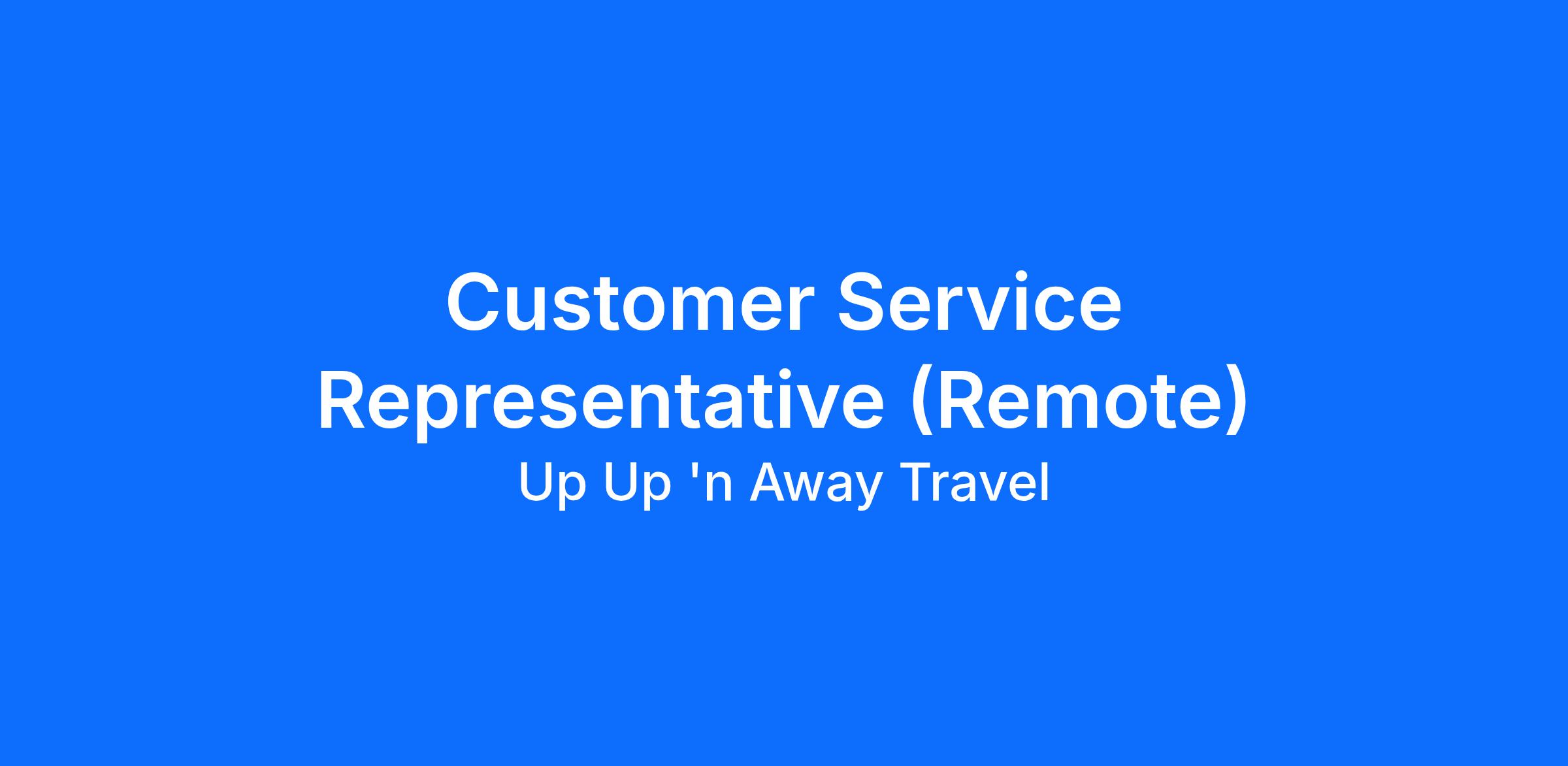Up Up 'n Away Travel is looking for ambitious, energetic, outgoing individuals to assist clients in turning their dream vacations into a reality. Believe it or not, most of what a travel agent does is customer service oriented and using those skills will ensure loyal lifetime clients. As a Customer Service Representative, you will be able to educate your clients as to what is the best resort for their location and budget. Up Up 'n Away Travel's goal is to ensure the client has the best vacation ever.