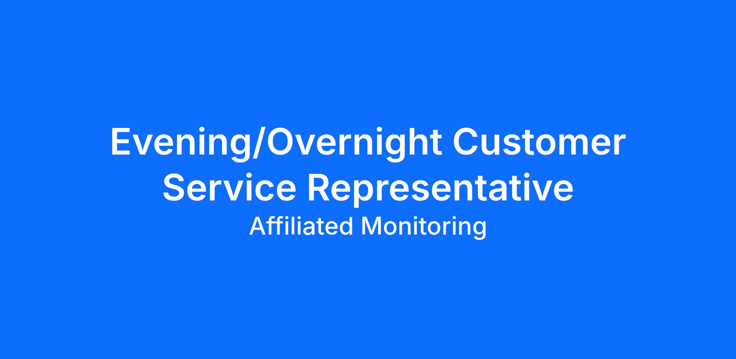 Affiliated Monitoring is an Equal Opportunity Employer and does not discriminate on the basis of an individual's sex, age, race, color, creed, national origin, alienage, religion, marital status, pregnancy, sexual orientation, gender identity and expression, disability, genetic trait or predisposition, carrier status, citizenship, veteran or military status and other personal characteristics protected by law.