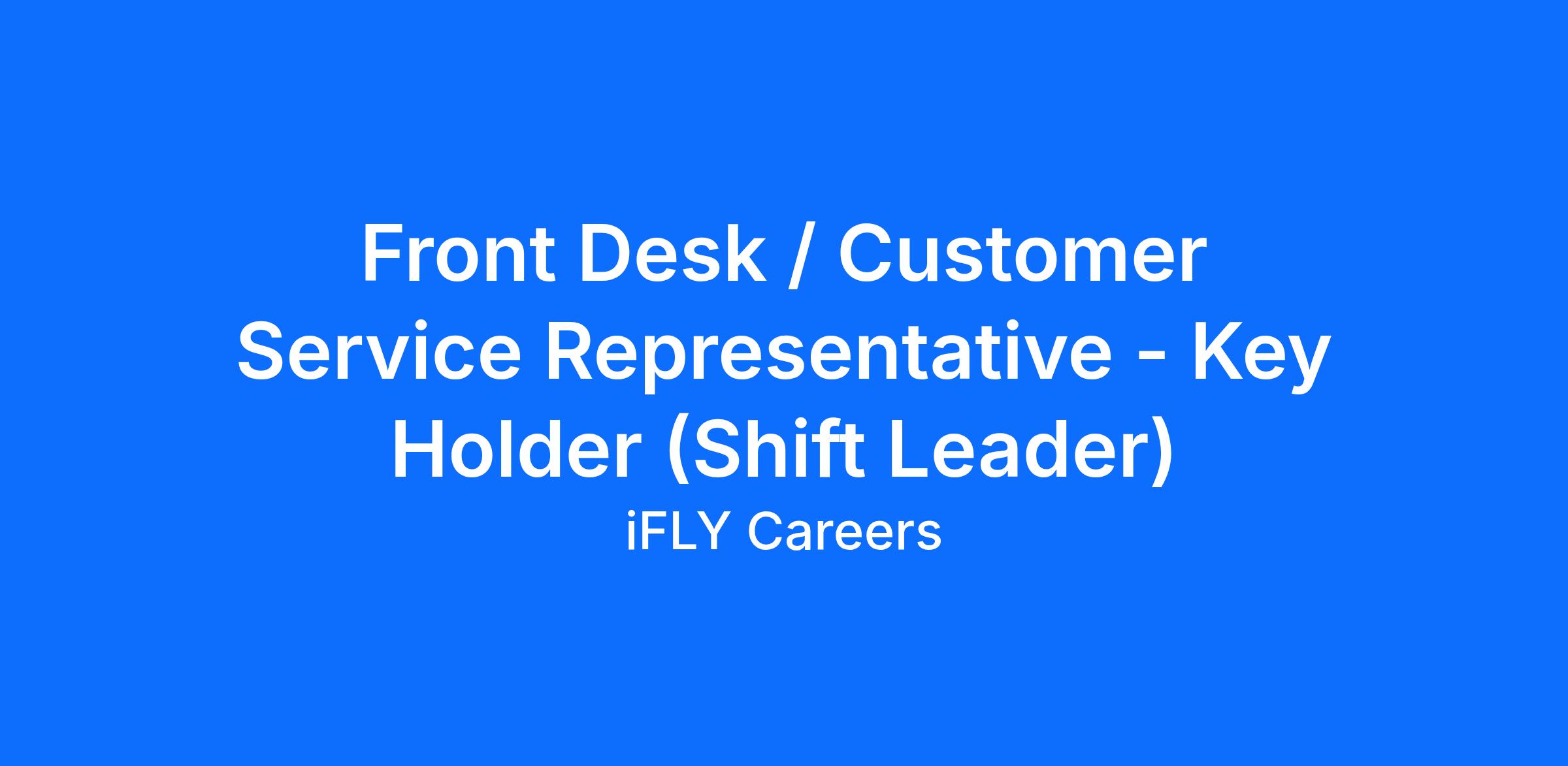 Front Desk / Customer Service Representative - Key Holder (Shift Leader)