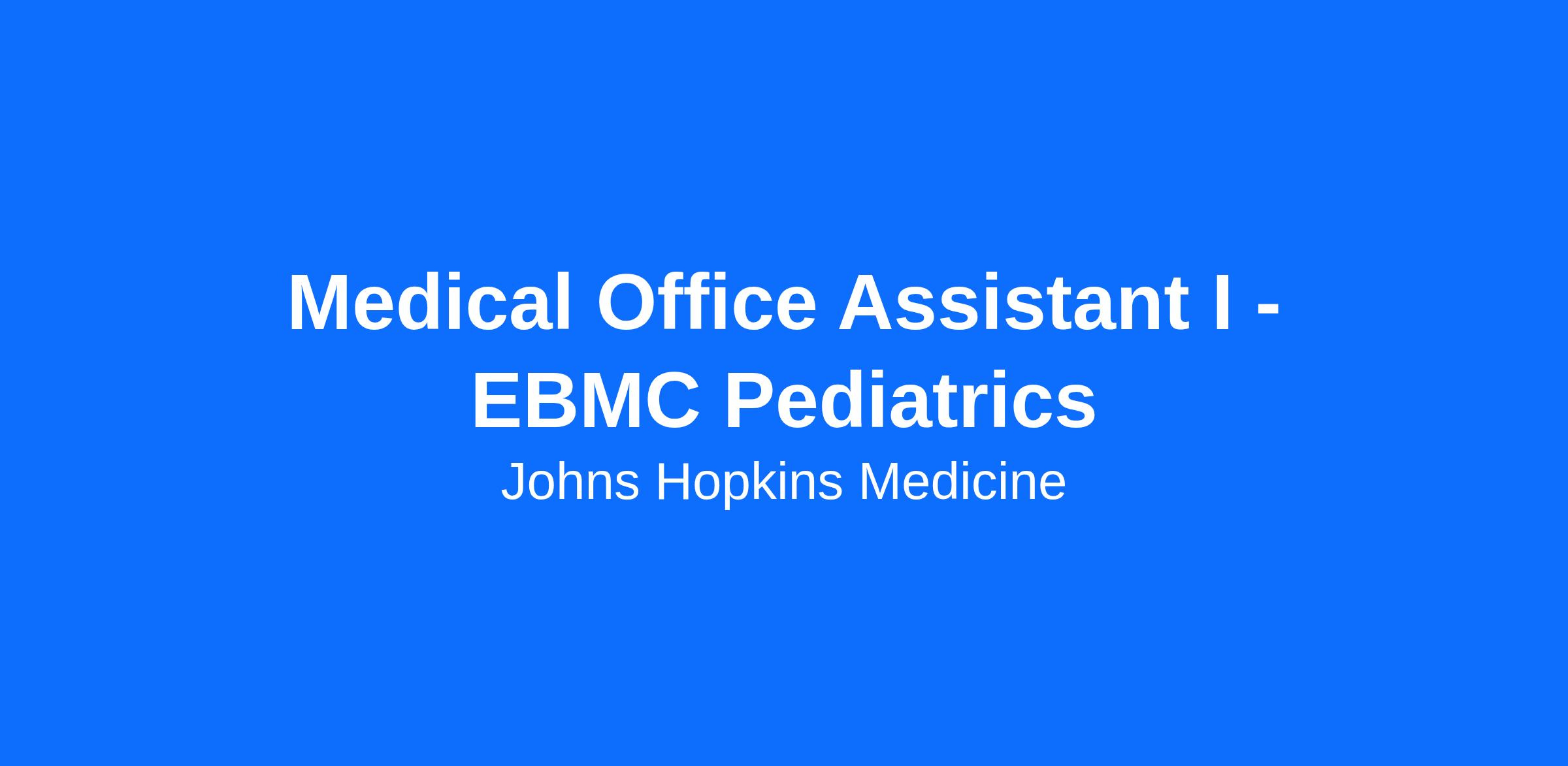 As a Medical Office Assistant for Johns Hopkins Community Physicians, you'll: