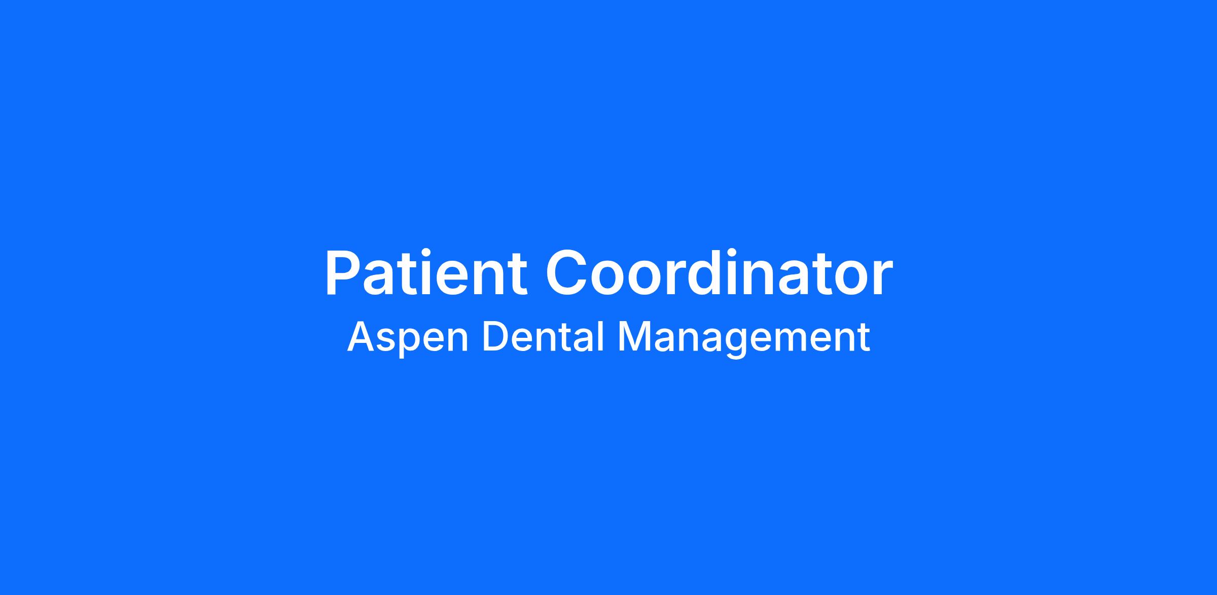 At Aspen Dental, we put You first, offering the security and job stability that comes with working with a world-class dental service organization (DSO). Our best-in-class training program, competitive compensation, and flexible scheduling will help you thrive in your career. When you join our team as a Patient Coordinator, which at Aspen we call Patient Experience Coordinator, you will have the opportunity to give back to communities and positively affect patients’ lives.
