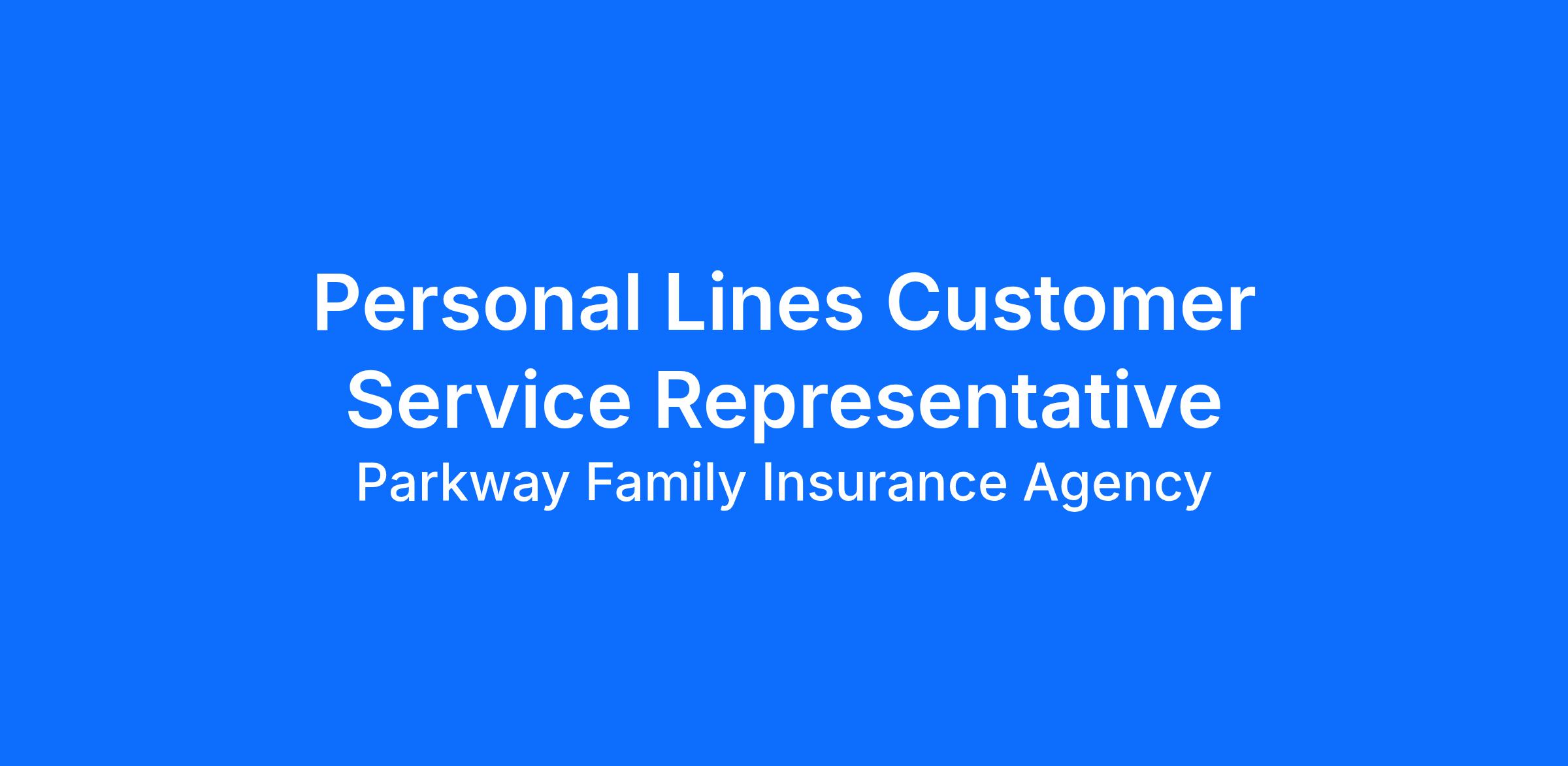 The Personal Lines Customer Service Representative at Parkway Family Insurance is responsible for maintaining solid customer relationships by handling existing customer inquiries and concerns with speed and professionalism through daily interaction with customers, insurance carriers, and producers while conducting specific service and marketing activities.