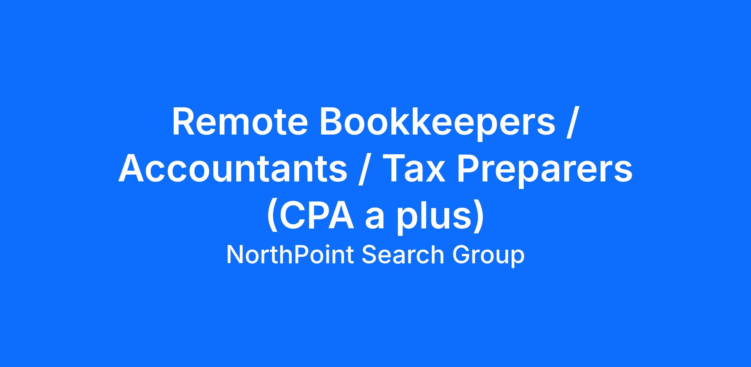 Remote Bookkeepers / Accountants / Tax Preparers (CPA a plus)